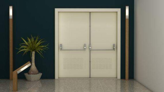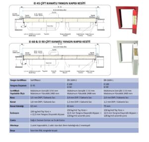Çift kanat yangın kapısı uygulaması ile daha geniş açıklıklara sahip yangın kaçış noktalarının güvenliği sağlanabilmektedir.